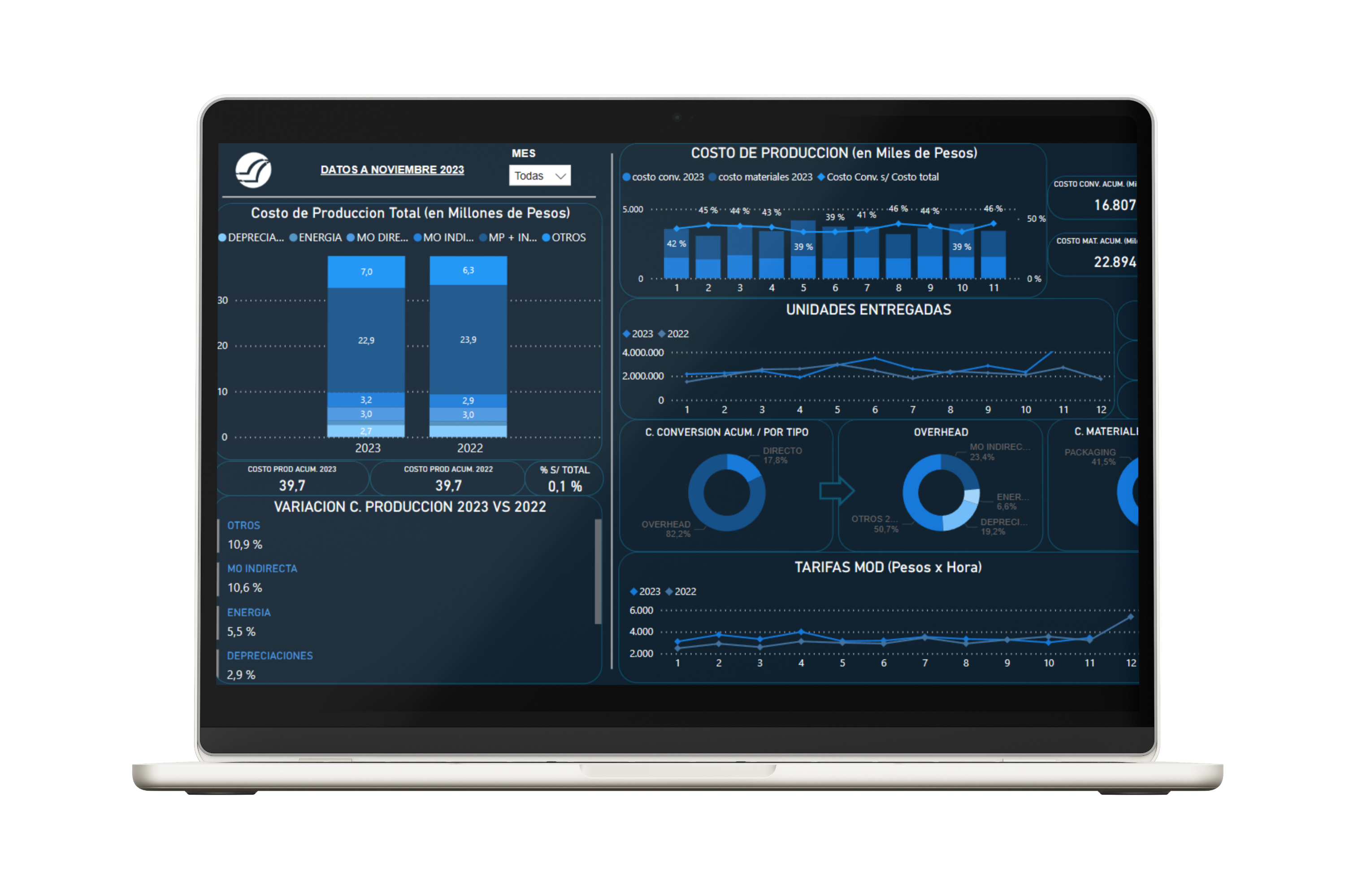 Este Tablero está construido para empresas industriales que deseen gestionar su costo de producción, su capacidad productiva, su inventario, su control de calidad y su productividad