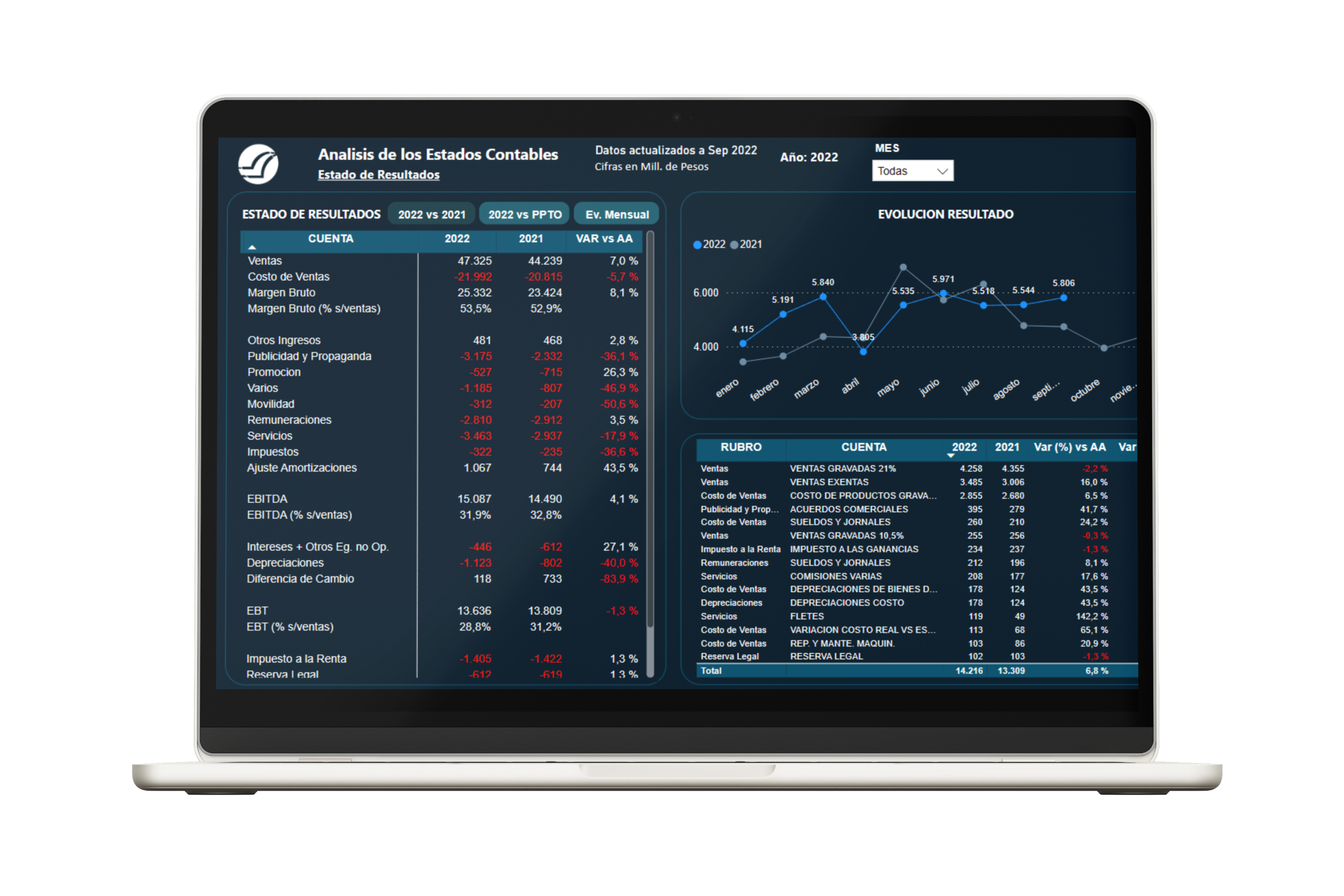- Compará la performance de los resultados de la empresa contra los presupuestados y los del año anterior